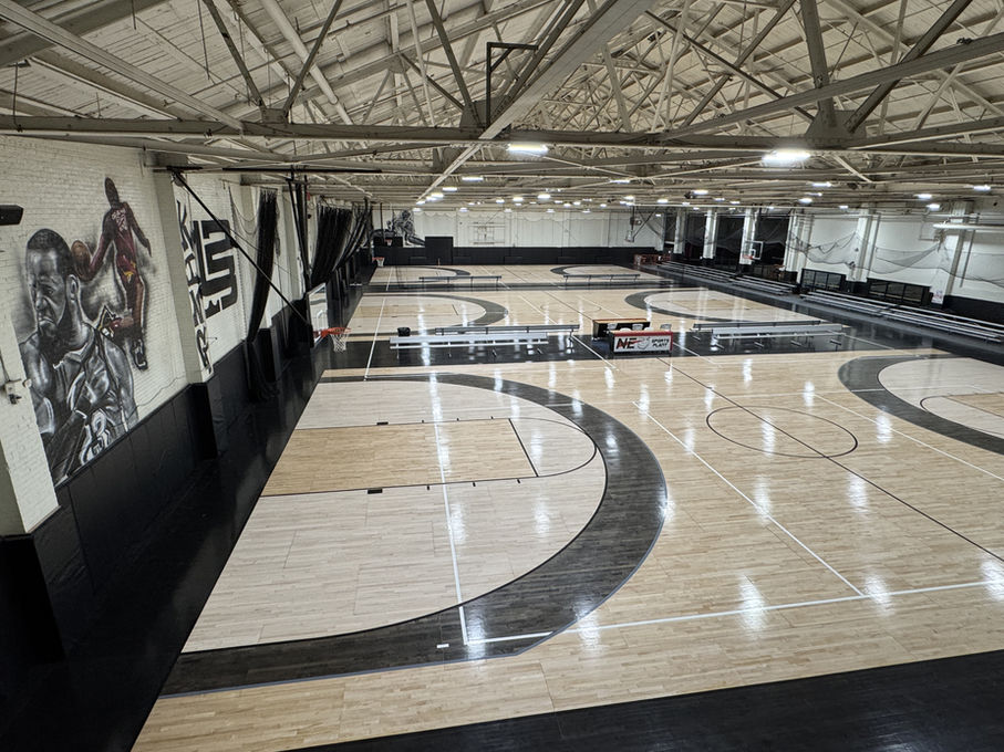 Spanning over 20,000 square feet, our state-of-the-art facility is a premier destination for athletes of all levels — from beginners to professionals. Completely transformed in late 2024, the space features three full-size wooden basketball courts, each equipped with both high school and NBA three-point lines.
